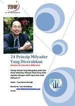 24 Prinsip Milyarder Yang Dicerahkan Seperti seekor lebah pada waktu dia mencari madu, tanpa disadari ketika ia sampai di bunga, dan kemudian bunga tadi diambil madunya, lebah tadi menyebarkan serbuk sari dari bunga-bunga tadi, yang membuat bunga-bunga tadi menjadi buah. Demikian juga orang yang kaya yang mencerahkan, tujuan utamanya persis seperti lebah yaitu mencari sari madunya. Efek sampingnya ternyata ia membuat kebun buah yang begitu indahnya. Orang yang kaya juga mau mencari kekayaan, tujuannya adalah mencari uang. Dalam waktu mencari uang, ternyata ia mencerahkan dan membuat dunia ini menjadi lebih baik, membuat orang lain menjadi bersemangat, membuat orang lain jadi lebih kaya, membuat orang lain hidupnya jadi lebih indah, lebih sehat, lebih bahagia.